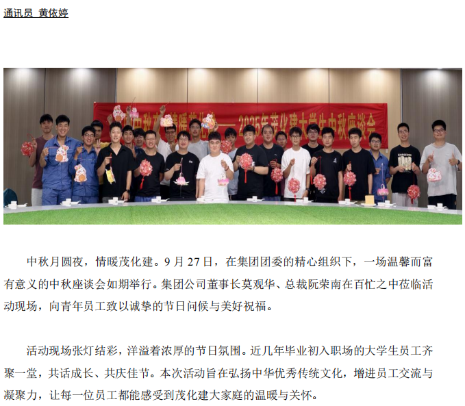 月圓中秋夜 情暖茂化建——2025 年集團(tuán)大學(xué)生中秋座談會圓滿舉行