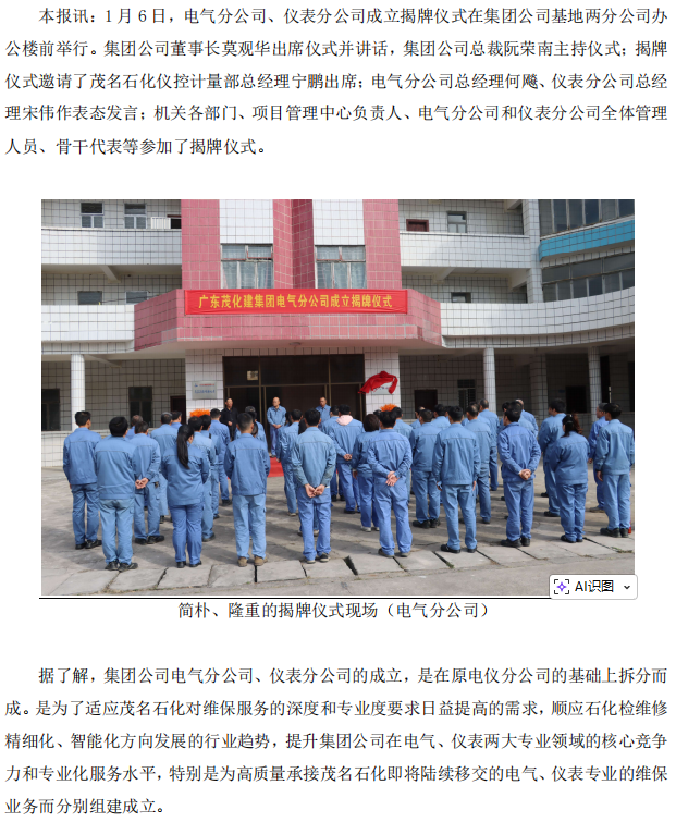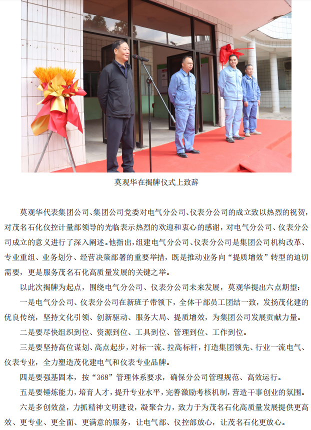 集團公司舉行電氣分公司、儀表分公司成立揭牌儀式