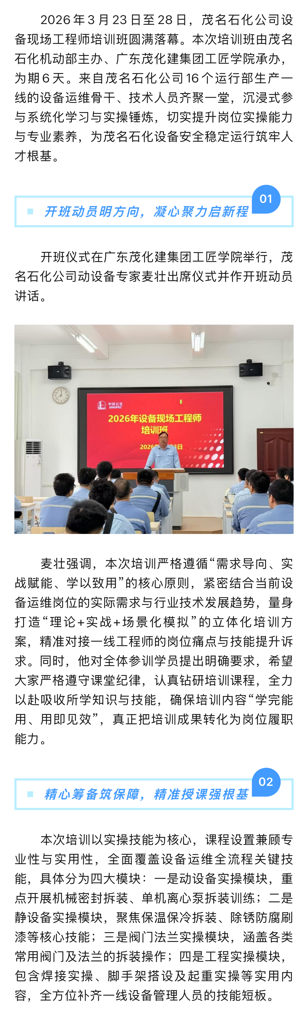 茂名石化設(shè)備現(xiàn)場(chǎng)工程師培訓(xùn)班圓滿結(jié)束