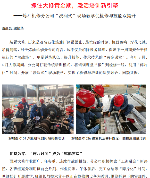 煉油機修分公司“浸潤式”現(xiàn)場教學(xué)促檢修與技能雙提升
