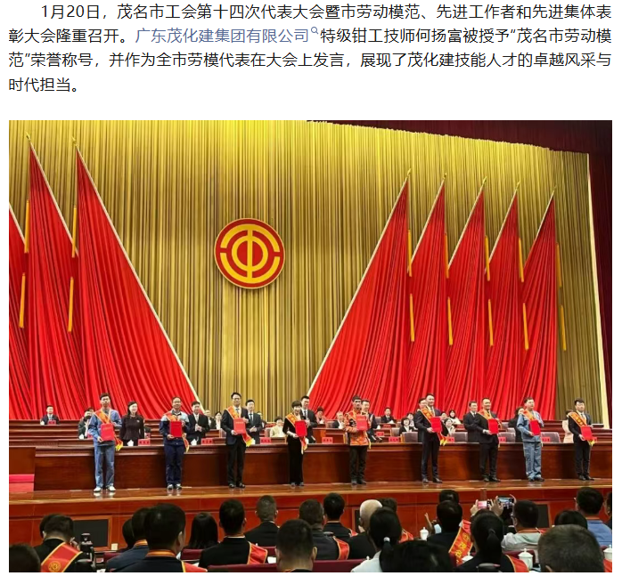 喜報!集團特級技師何揚富榮獲“茂名市勞動模范”榮譽稱號