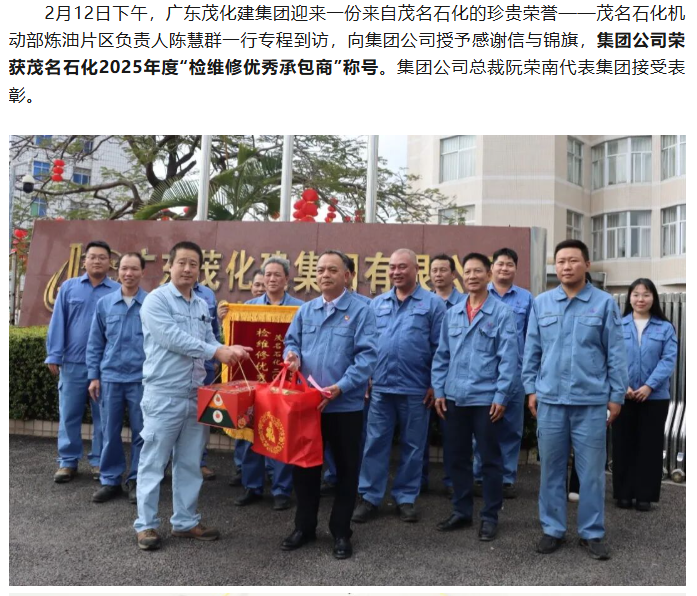 喜報 | ?廣東茂化建集團榮獲茂名石化2025年度“檢維修優(yōu)秀承包商”稱號并獲感